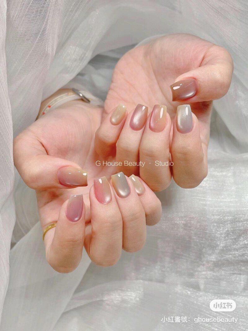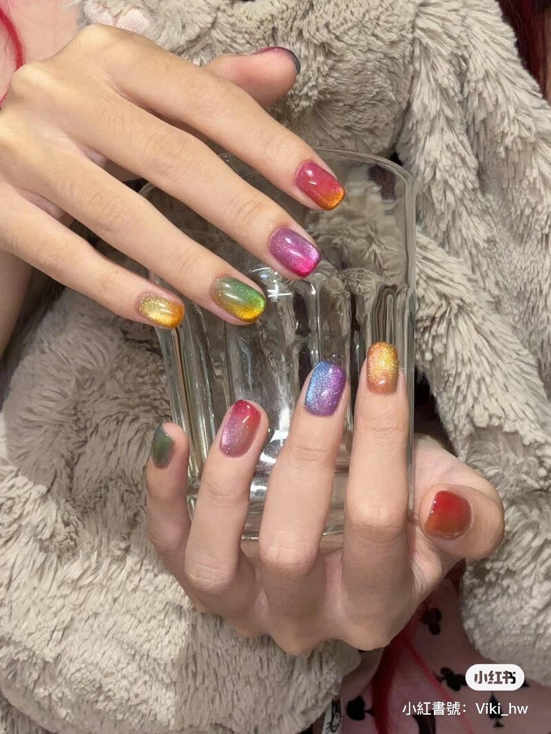 该如何展现这样的通透感?有的美甲师会融合猫眼、有的美甲师则是搭配镜面,又或是利用凝胶打造立体的质感,让最上层的立体透明凝胶透出底下的色泽。