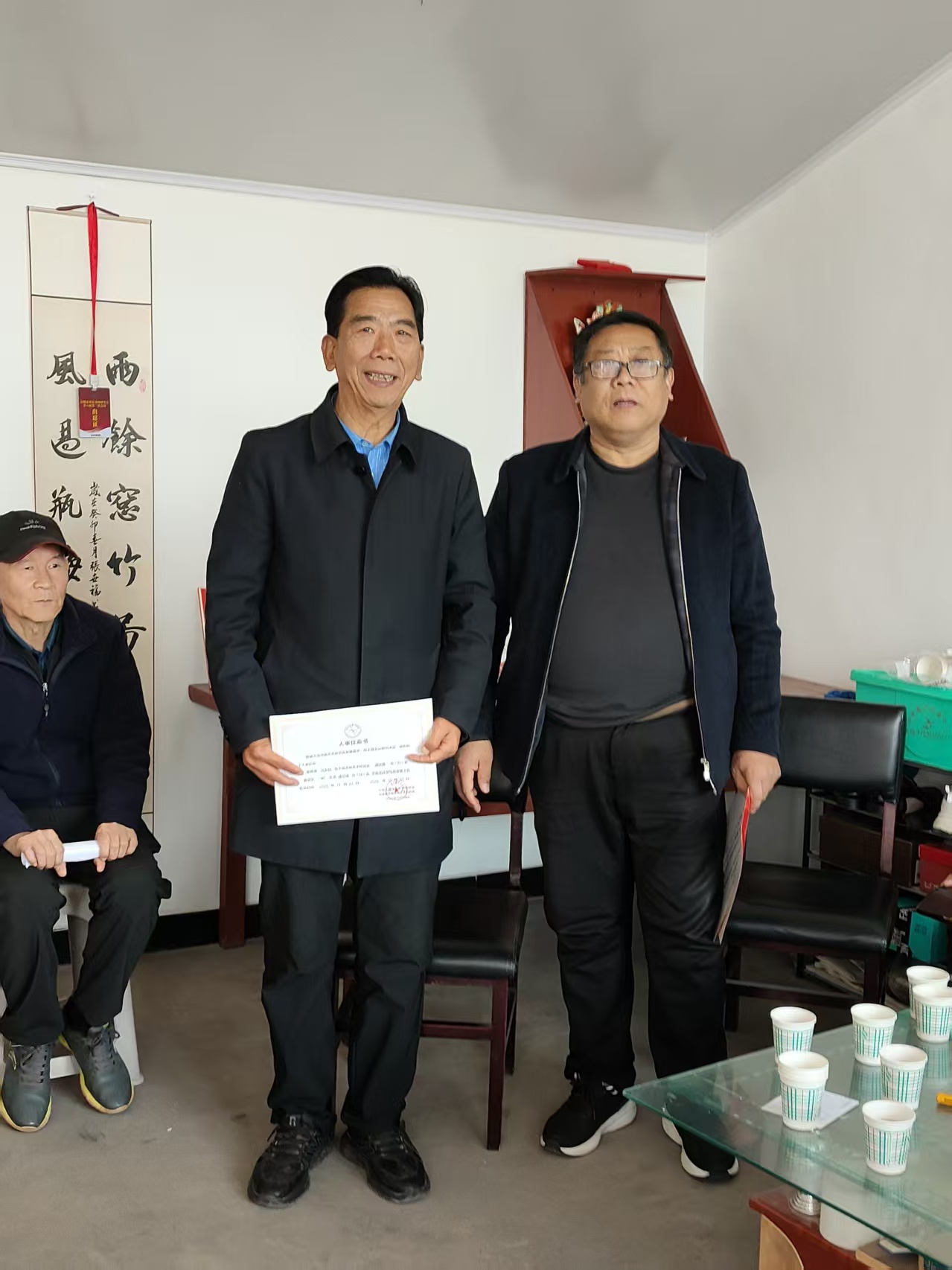 万荣县大地书画通化分会在基层推荐,县会审批后于十月三十一日正式挂牌成立。县大地书画主席张学仁一行5人到会祝贺。向分会授牌,宣读任命书,颁发聘书。张学仁主席并发表了热情洋溢的讲话,通化分会会长张世福作了表态发言,新会员展示了自己的书法作品,与会会员挥毫泼墨,现场书写,观赏点评。整个活动自始至欢快热烈。